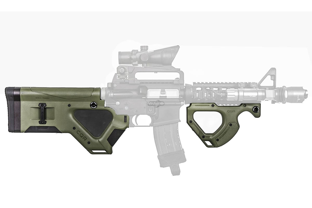 Designed for enthusiasts Made of fiberglassreinforced polymer, the CQR combined with the CQR foregrip provides one of the most compact and ergonomic stock systems for the AR15 and AR10 platforms Available in Black, Sand and Green All HERA polymer products are manufactured on own injection molds in Lower FranconiaHERA Arms CQR BUTTSTOCK AR Stock Designed for the LE/Military market to create one of the most rigid and compact Rifle Systems based on the widely available AR15 Plattform The CQR Riflestock is an easy to install replacement buttstock for MilSpec AR15 Rifles using a MilSpec Collapsible Carbine buffer tube